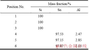 表2 图5(b)中Si-55%Sn合金定向凝固后上部剖面的EDS分析结果
