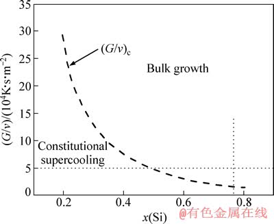 Fig. 6 Relationship between bulk Si growth with G/v and mole fraction of Si[18]