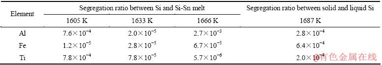 Table 4 Segregation ratios of impurities between solid Si and Si-Sn melts[18]