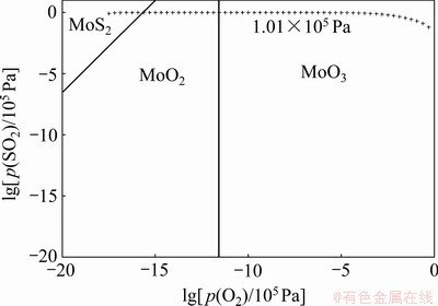 图5 Mo-S-O三元体系在873 K下的优势区图