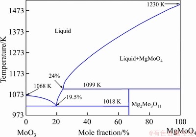 Fig. 10 Binary phase diagram of MoO3-MgO (MgMoO4) systems[21]