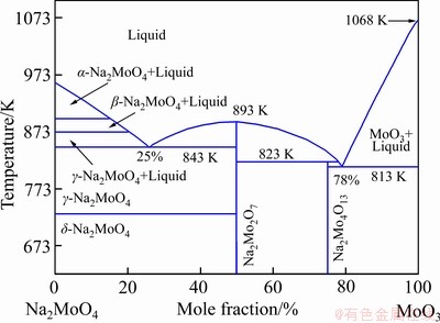 图11 MoO3和Na2O(Na2MoO4)之间的二元相图[22]