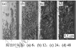 Fig.2 Surface morphology of specimen after corrosion exposure for different time