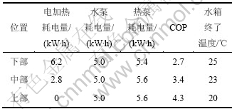 (3) 用户直接从水箱顶层获取热量,将控制温度探头和电加热设置在水箱顶部,可以提高控制精度和系统COP。