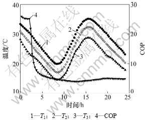 图8 2009年1月15~31日储水箱温度分布及系统COP