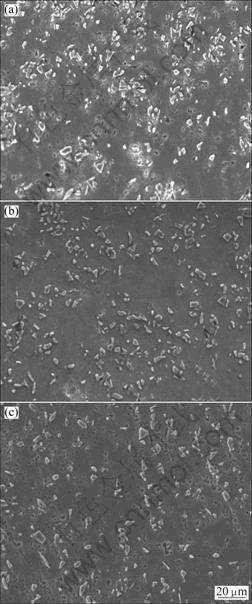 Fig.5 SEM images of 10% SiCp/Al-Mg composites: (a) SiCp/Al-2.5Mg; (b) SiCp/Al-4.2Mg; (c) SiCp/Al-6.8Mg