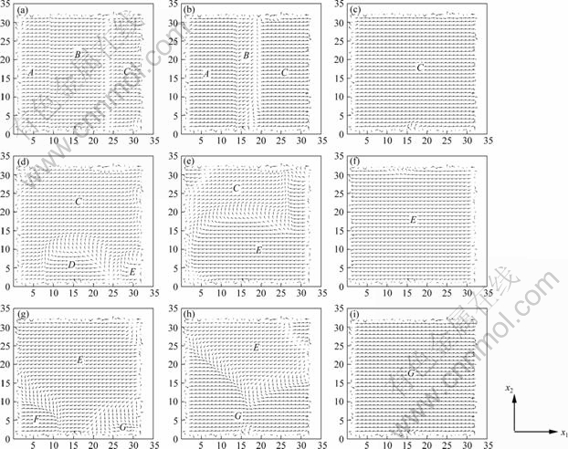 Fig.1 Domain structures corresponding to point a-i in Figs.2 and 3: (a) 0; (b)120; (c)150; (d)900; (e)950; (f) 1 000; (g) 1 700; (h) 1 750; (i) 2 000 time steps