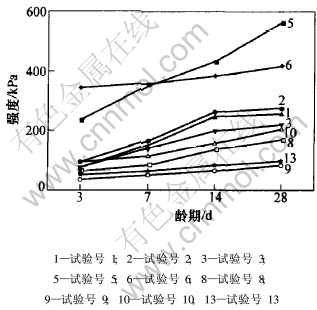 根据表2所列试验数据, 作部分试样强度随时间的变化图, 如图3所示。
