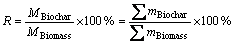 式中:R为重金属总保留率,%;MBiochar为生物炭中所有重金属总质量,mg;MBiomass为油菜秆油料中所有重金属的总质量,mg;r为各重金属保留率,%;mBiochar为生物炭中各重金属质量,mg;mBiomass为油菜秆原料中各重金属质量,mg。