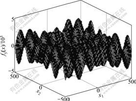 There are many local peaks which are far from the global minimum of this function, so it is easy to find local optimal in evolution process. There is a global minimum value of -4 189.828 9 at (420.968 7, …, 420.968 7). The geometric characteristic is shown in Fig.7.