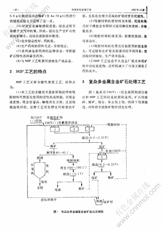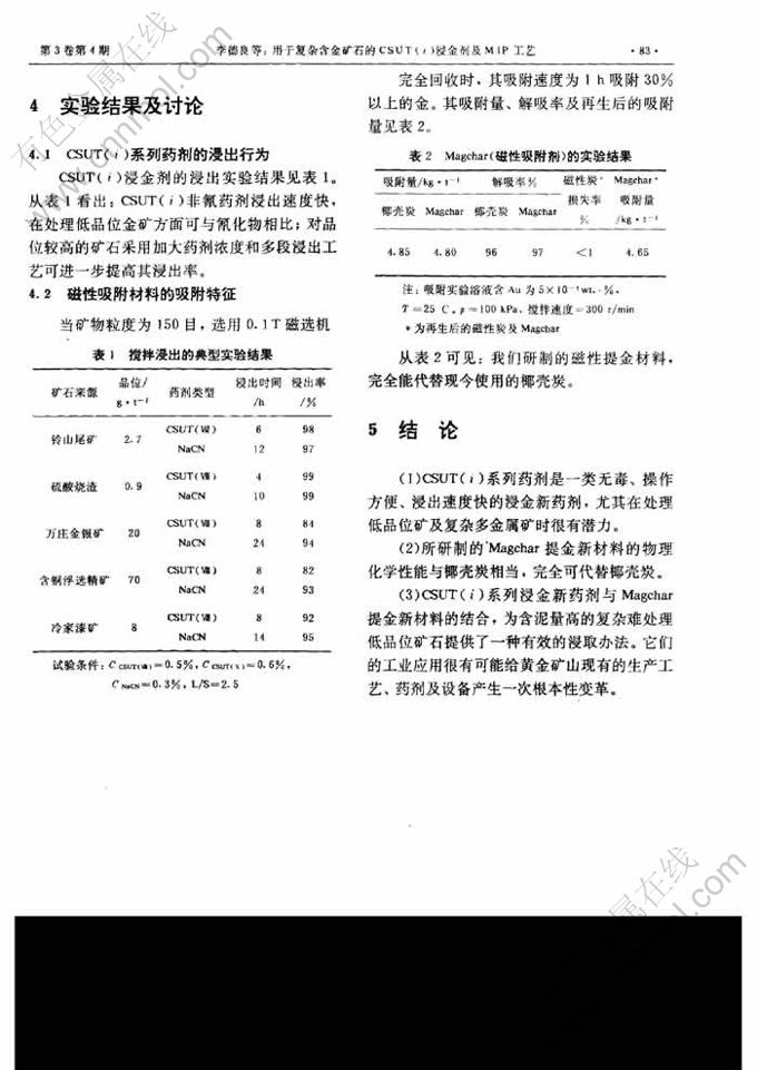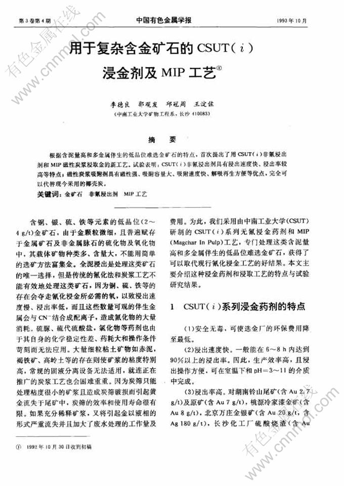 关键词:金矿石 非氰浸出剂 MIP工艺