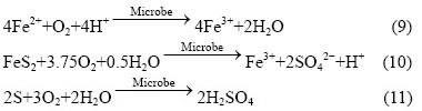 FeS2+14Fe3++8H2O→15Fe2++2SO42-+16H+ (7)