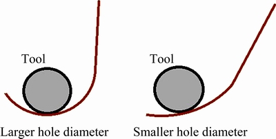 2) The hoop strains nearby the flange edge develop due to increased tool/sheet contact because of bending of material around the tool. The magnitude of these strains decreases as the hole size increases. As a result, the wall thickness of flange increases.