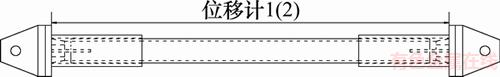 试验采集数据包括支撑轴向位移及轴向力。其中,轴向力由液压作动器记录;因支撑存在连接间隙及连接段弹性变形,所以,支撑轴向位移由非转动平面对称布置的2个拉线位移计1和2读数平均值求得,这样可更精确地反映支撑内芯的真实位移。位移计布置如图5所示。