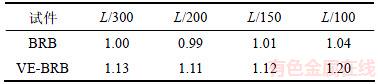 支撑内部不可避免地存在摩擦作用,使得滞回曲线拉压荷载峰值存在差异,即最大压力大于最大拉力。支撑的拉压承载力不平衡特性可由拉压不均匀系数β表示:β=max(Pimax/Timax)(其中,Pimax与Timax分别表示滞回曲线第i圈等幅循环中的轴压力与轴拉力幅值)。此系数越大,反映支撑拉压承载力不平衡特性越显著,对支撑节点的受力不利。美国ANSI/AISC 341—10“建筑钢结构抗震设计规程”[19]规定该系数不大于1.3。