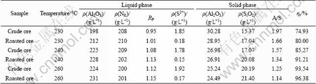 Table 4 Results of digestion of Henan high-sulfur bauxite A by Bayer process