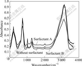 图2 表面活性剂对干燥后粉体红外光谱的影响