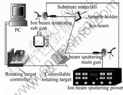 Fig.1 Schematic diagram for deposition of Sm-Fe GMFs by ion beam sputtering