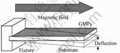 Fig.2 Schematic diagram for deflection of Sm-Fe GMFs cantilever beam in magnetic field