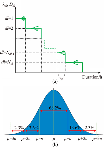 The probable factors which are modeled in deregulated environment are electricity prices and load. Note that they have direct relation to each other, strongly, in this way that increase/decrease of each one leads to the increase/decrease of the other one. In order to model the uncertainty of the load and price parameters, the waveforms of these parameters are divided into Ndl stages in every year shown in Fig. 2. The vertical axis in Fig. 2 demonstrates the demand/price level factors. Note that as clearly seen from Fig. 2 the load and price level factors are supposed to be normally distributed close to their chosen expected values and each normal distribution is separated into 5 areas in which every area’s probability is determined. Although, the expected price and demand values are dependent in each demand level, the variations of these two parameter around their expected values can be assumed independently.