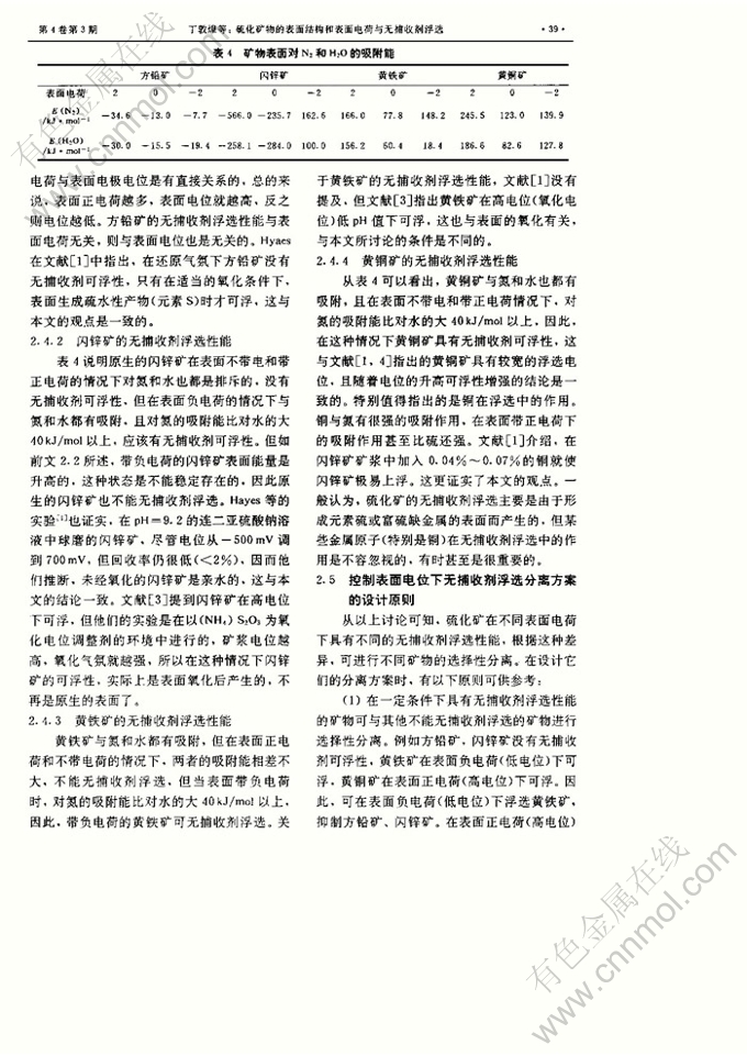 硫化矿物的表面结构和表面电荷与无捕收剂浮选