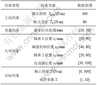 表1 输出轴协同优化约束条件