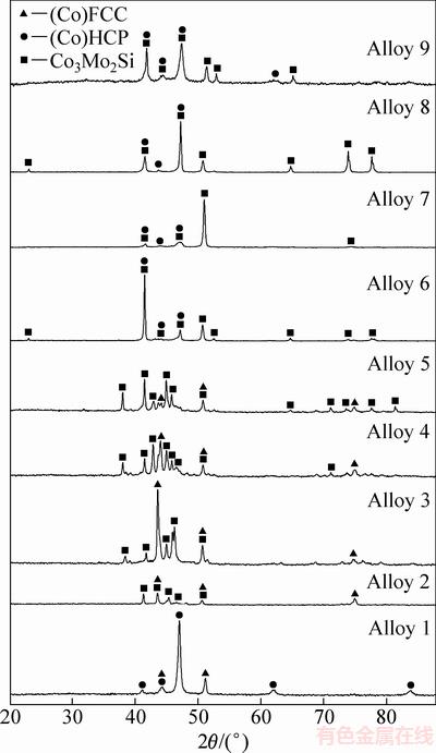 Fig. 2 XRD patterns of Co-Mo-Cr-Si alloys