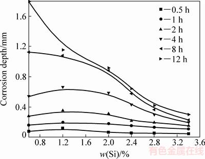 Fig. 4 Change curves of corrosion thickness of CoMo28.5Cr16.7Six alloys with Si content