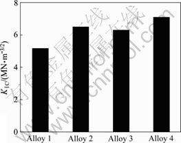The hardness was measured by Rockwell hardness tester with 600 N load. The fracture toughness KIC of the alloys was computed by[17]