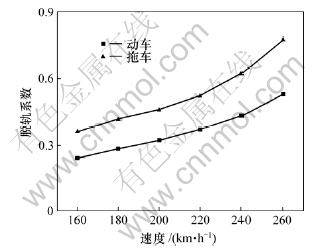 Fig.8 Relationship between maximal derailment coefficient and velocity