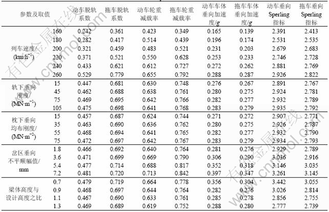 4 直逆向过岔时列车-道岔-桥梁振动影响因素分析