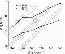 Fig.6 Relationship between maximal wheel axle lateral force and velocity