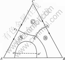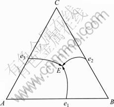 在液相面Ae1Ee3上,固相组元A与液相L平衡共存: