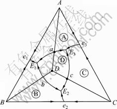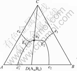 Fig.2 Ternary phase diagram with tenary congruent melting compound