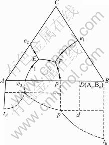 在析出化合物D(AmBn)的液相面e1E1E2e2上