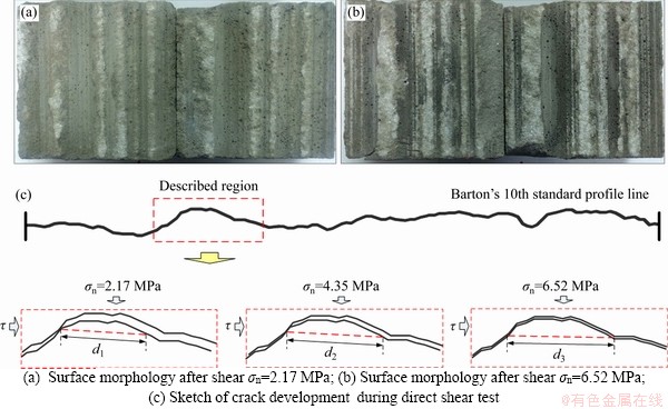 Figure 10 Shear process of rock discontinuity under different normal stress (Shear area: d1<