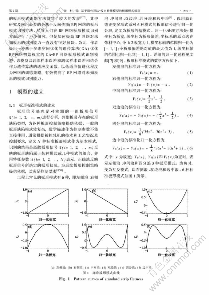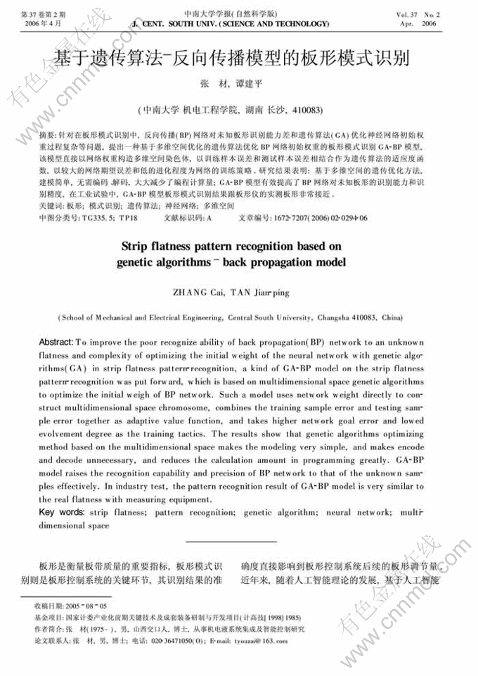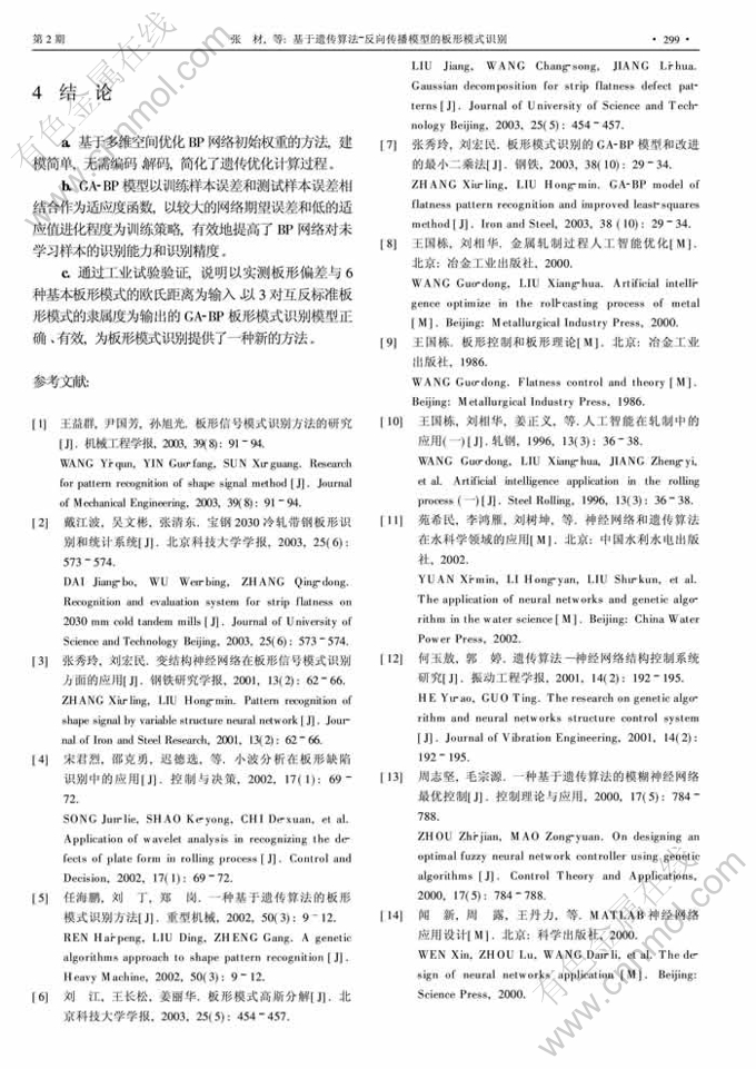 Key words:strip flatness; pattern recognition; genetic algorithm; neural network; multidimensional space