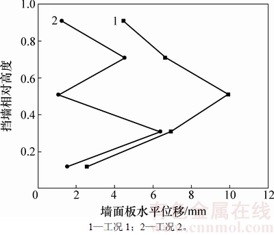 Fig. 5 Wall panel horizontal displacements when filling is completed