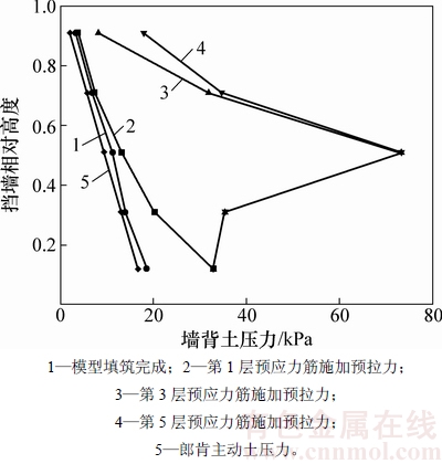 试验结果表明:预应力筋的预拉力能显著增大该位置的墙背土压力,从而改变了墙背土压力的分布形式;预应力筋的预拉力对墙背土压力的影响范围为该加筋层的相邻下层及以上各层。