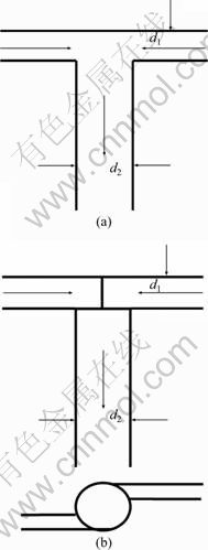 Fig. 2 Schematic diagram of impinging streams reactors: (a) T-tybe; (b) T-type vortex mixer