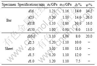 BTi-6431S钛合金典型规格棒材、厚板和薄板的实测常规力学性能见表2。由表2可以看出,BTi-6431S钛合金在室温下具有较高强度和良好的塑性匹配。同时,随着棒材规格的增大,室温抗拉强度和塑性呈下降趋势。