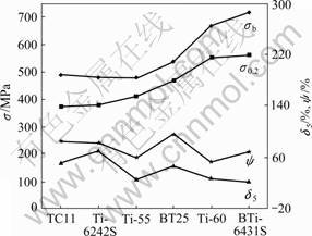图2 几种常用高温钛合金在650 ℃的高温拉伸性能