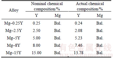 Table 1 Chemical composition of Mg–Y alloys in mass fraction