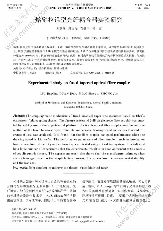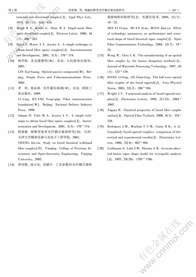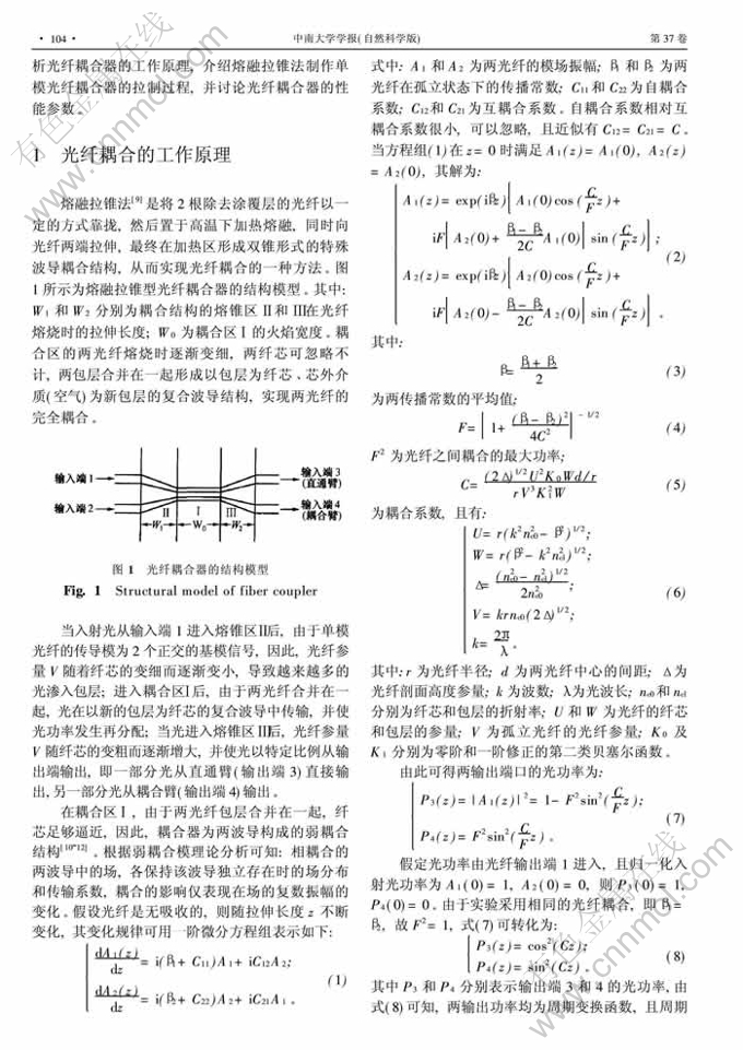 Key words:fiber coupler; coupling-mode theory; fused biconical taper