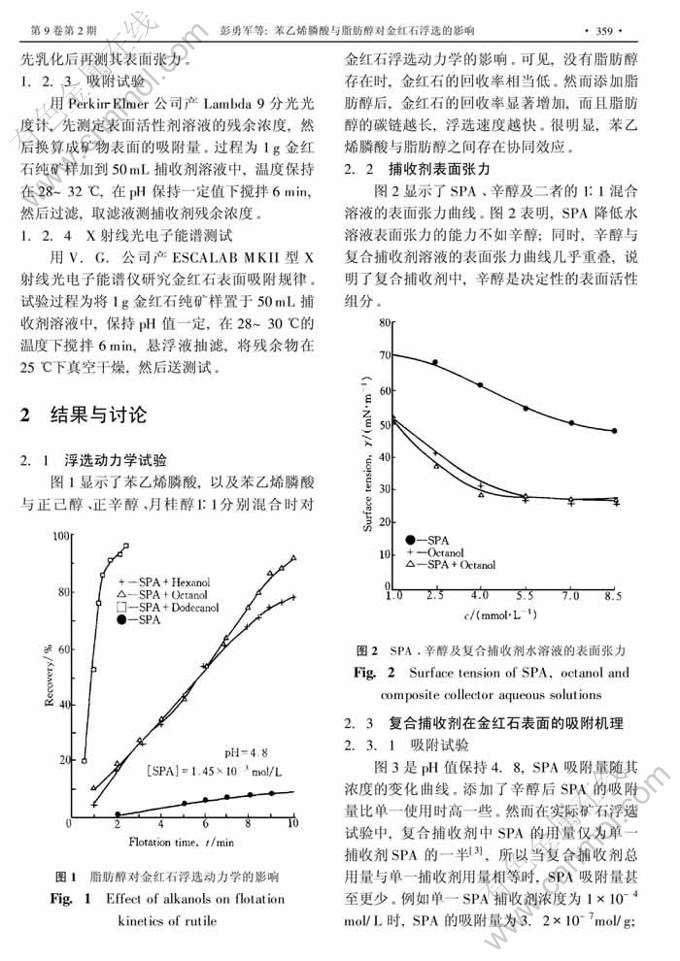 苯乙烯膦酸与脂肪醇对金红石浮选的影响