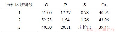 由图8可见:温度对吸收剂形貌有重要影响, 920 ℃时,晶化速率慢,结晶颗粒大(见图8(a)和(b));1 060 ℃时,晶化速率快,结晶颗粒小(见图8(c)和(d))。另外从图8(d)可以发现:在晶粒表面有细微的缝隙产生。从表3可以看出:分析区1,2和3中结晶颗粒表面和非结晶表面Ca含量基本相同,但结晶颗粒表面1和3中磷含量分别达到了17.27%和20.11%,非结晶表面2中只有1.54%,说明结晶颗粒表面更易富集磷,温度升高加快晶化速度,故温度升高有利于磷的去除。