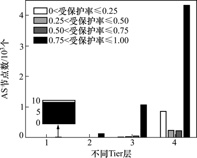 2) 评估了当前域间网络的可保护程度,域间网络中层次较高的AS节点具有更高的受保护比率。