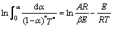一般地,E远大于实验初始时的RT0,故exp[-E/(RT0)]≈0,则对式(5)分离变量并整理后有