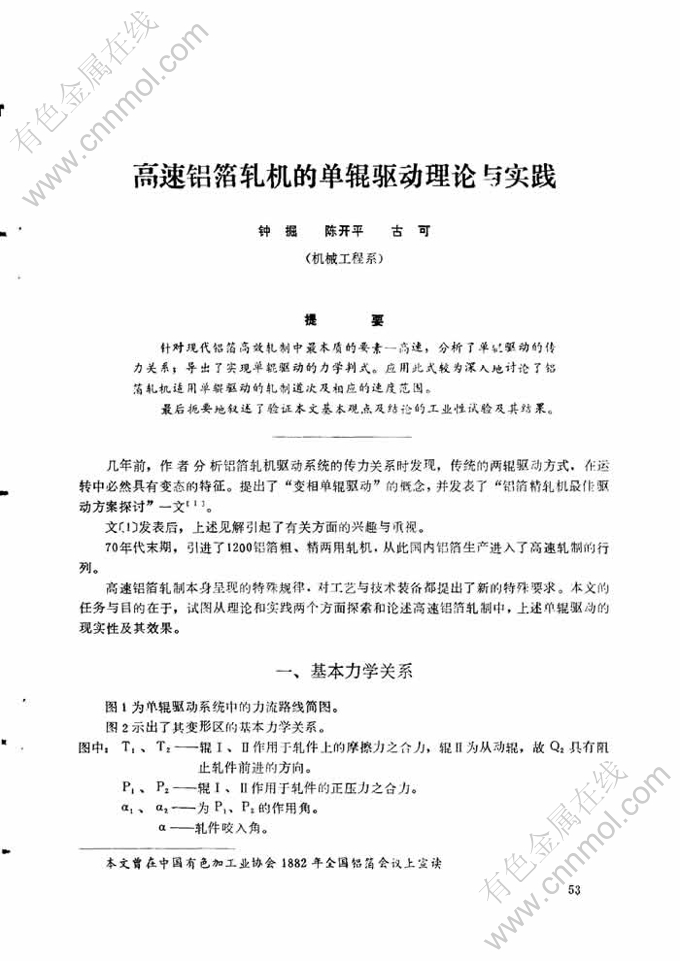 高速铝箔轧机的单辊驱动理论与实践