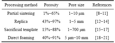Table 1 Porosity and pore size of porous SiC ceramics prepared by different methods[3, 8-21]